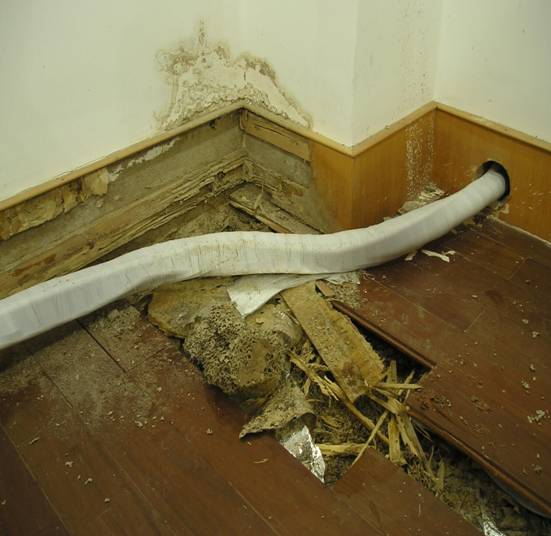 案例:2015年,漳州市某賓館7樓木地板發(fā)生白蟻危害。經(jīng)專業(yè)人員檢查發(fā)現(xiàn),這些白蟻來源于賓館外一棵行道樹中,通過地下管道和建筑物沉降縫隙的間隙蔓延進(jìn)入賓館內(nèi)部危害。